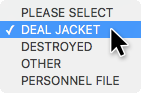 9. From the Stored At dropdown menu, choose Deal Jacket, Destroyed, Other or Personnel File. This is for logging purposes only.