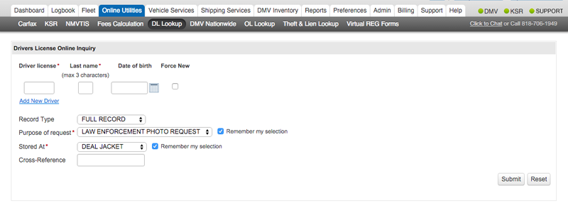 1. Navigate to Online Utilities > DL Lookup.