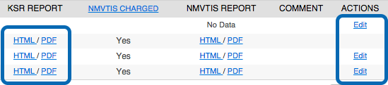 11. Once processed, the KSR reports appear at the bottom of the window. Click the HTML or PDF links to view the reports.
