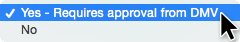 10. Next to the Address & Citations dropdown menu, choose Yes – Requires approval from DMV or No as desired.