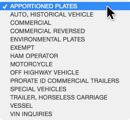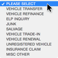 4. From the File Code dropdown menu, select the appropriate file code as needed. File code attempts to auto select based on data entered into the Plate Number or VIN text field.