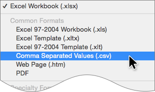 3. In Excel, save the file as a .CSV. From the File menu, choose Save As…