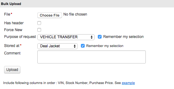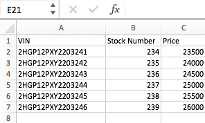 VIN, Stock Number, and Purchase Price