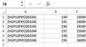 2. If you have multiple KSRs to run at once, use Excel to create a simple spreadsheet containing the following columns: