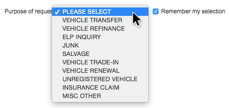 9. From the Purpose of Request dropdown menu, click the appropriate option. To keep this setting, click the Remember my selection checkbox.