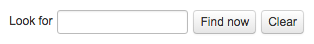 Type any criteria into the Look for text field. Click the Find now button to search for the criteria. Click the Clear button to clear any current filtered results and reset the view.