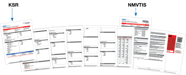 The KSR page features a transaction log mirroring the NMVTIS page.