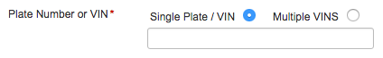 3. From the Plate Number or VIN radio group, choose Single Plate / VIN. In the Plate Number or VIN text field, enter the entire VIN or entire plate number for the vehicle.